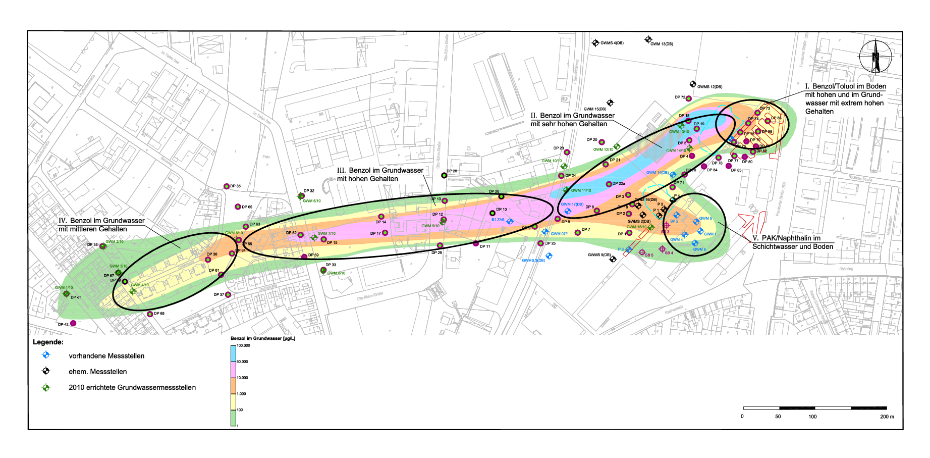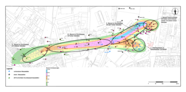 Bei der letzten Bodensanierungsmaßnahme im Jahr 2008 ergab sich erstmals der Nachweis auf tiefer reichende Kontaminationen bis in den grundwasserführenden Bereich. Die folgenden Untersuchungen in den Jahren 2009 und 2010 ergaben eine erhebliche Grundwasserbelastung im Abstrom des ehemaligen Gaswerksgeländes. In der Folge wurden weitere Untersuchungen durchgeführt, um die Grundwasserbelastung genauer einzugrenzen.