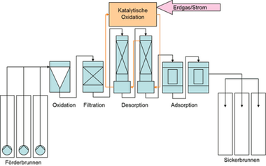 Das Pump & Treat-Verfahren wird zur Entfernung der hohen Schadstoffgehalte im Grundwasser im Abstrom des Schadenszentrums eingesetzt. Pump & Treat ist ein hydraulisches Verfahren, bei dem man mittels Brunnen oder Drainage kontaminiertes Grundwasser fördert, es physikalisch und chemisch reinigt und es dann wieder versickert oder anderweitig ableitet. Durch die Entnahme des Grundwassers bildet sich ein Trichter aus, wodurch die natürliche Grundwasserfließrichtung in der Umgebung des Brunnens geändert wird und das Grundwasser von allen Seiten der Entnahmestelle zufließt.